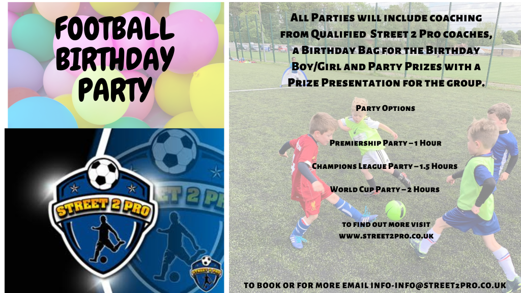 All Parties will include coaching from Qualified coaches, a Birthday Bag for the Birthday Boy/Girl and Party Prizes with a Prize Presentation for the group.